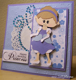 The image and paper are from Paper Makeup Stamps card kit, Mon Cheri. The ribbon is from Michael's dollar bin. I made the black clay flower from the molds I won at Julie's Bits. She currently has a giveaway, you may want to stop by and check it out.