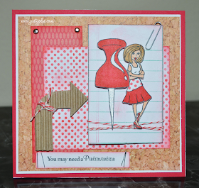 The cork paper is from my stash, I think it's by DCWV. I stamped the polk dots using newest stamp from The Stamps of Life, Birthday2Celebrate. The mini writing paper is also a stamp by TSOL, List2Write. The corrugated arrow is by Close to My Heart, blog candy I won at Elizabeth's blog.