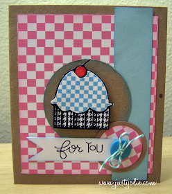 The cupcake and sentiment were freebies last year on their blog. A littler paper piecing, a dollop of glossy accents on the cherry, a button with twine....and I think it looks pretty cool!