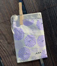 I used State Line's size 4"x 6" bag. The small outline mum and 'thank you' are from the stamp set Mums2Stamp. The large mum is from MoreMums2Love; both stamp sets by The Stamps of Life. I used hot fix stones and glued down the smaller bling with Aileen's Fast Grab glue.